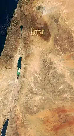 Hauran, arabisch حوران, DMG Ḥaurān, ist eine durch vulkanische Tätigkeit geprägte Landschaft im Südwesten von Syrien, die sich nach Süden bis über die jordanische Grenze erstreckt. Charakteristisch sind Hügel mit Geröllfeldern aus schwarzen Basaltbrocken, vereinzelte Vulkankuppen und in der zentralen Ebene ausgedehnte Weizenfelder, die auf fruchtbaren, rötlichen Verwitterungsböden gedeihen. In der griechischen und römischen Antike war Auranitis ein Teil des heutigen Gebietes. Vor allem in der Spätantike blühte der Hauran und war eine dicht besiedelte, ökonomisch bedeutende Region.