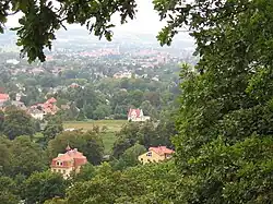 - ↑ Volker Helas (Bearb.): Stadt Radebeul. Hrsg.: Landesamt für Denkmalpflege Sachsen, Große Kreisstadt Radebeul (= Denkmaltopographie Bundesrepublik Deutschland. Denkmale in Sachsen). Sax-Verlag, Beucha 2007, ISBN 978-3-86729-004-3, S. 106 f. sowie beiliegende Karte.