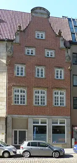 Das dreigeschossige, ursprünglich verputzte, dreiachsige Wohn- und Kontorhaus mit Satteldach und einem barocken Giebel wurde um 1770 in der Epoche des Barocks für einen Kaufmann gebaut.