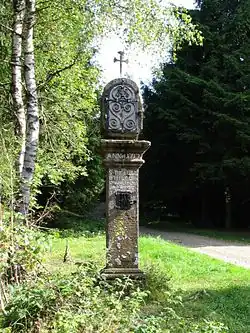 Etwa 2 km nördlich von Haus Bruch befindet sich im Wald das Steinerne Kreuz, ein St. Nikolaus geweihter Bildstock aus dem Jahr 1713. Die Legende erzählt, dass zwei Reisende auf dem Kriegerweg beim Totenohl bei Gleierbrück die Hochwasser führende Lenne durchqueren wollten. Der Erste kniete nieder, sprach ein Gebet zu St. Nikolaus, dem Schutzpatron der Reisenden, und überquerte den reißenden Fluss unbeschadet. Der Zweite verlachte die Frömmigkeit des Ersten, stürzte und kam in den Fluten um. Aus Dank für die unversehrte Flussüberquerung ließ der erste Reisende daraufhin auf der Anhöhe hoch über der Furt den Bildstock errichten.