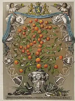 Der in den Niederlanden regierende Teil des Hauses Nassau hält seit 1530 auch den Titel des Prinzen von Oranien (französisch Prince d’Orange, niederländisch Prins van Oranje). Nach einem weiteren Erbgang im Jahr 1702 hielten sowohl das Haus Oranien-Nassau als auch das Haus Hohenzollern den Titel des Prinzen von Oranien. Die Übersetzung „Fürst von Oranien“ ist nur für die historischen (republikanischen) Statthalter der Niederlande aus dem Hause Oranien-Nassau (bis 1795) korrekt, doch ging das Fürstentum Orange (Oranien, Oranje) am 11. April 1713 den Nassauern verloren. Der Titel „Prinz von Oranien“ wurde durch Vertrag mit dem König von Preußen am 16. Juni 1732 bestätigt und wurde in der Form, auch als Wilhelm I. am 2. Dezember 1813 erst souveräner Fürst der Niederlande und schließlich am 16. März 1815 König der Niederlande und Herzog (vom 9. Juni 1815 bis zum 23. November 1890 Großherzog) von Luxemburg wurde, bis heute beibehalten.[1] Seit dem 24. August 1815 ist nach der Verfassung der Niederlande der Titel des Prins van Oranje traditionell der Titel des Kronprinzen der Niederlande, der immer der älteste Sohn des Königs war.[2] Seit einer Verfassungsreform vom 17. Februar 1983 ist immer das älteste Kind des Staatsoberhauptes Thronerbe, unabhängig vom Geschlecht, also Kronprinz oder Kronprinzessin. Seit dem 20. Mai 2002 ist die weibliche Form Prinses van Oranje auch für eine Kronprinzessin möglich.[3] Diese Regelung trat am 30. April 2013 erstmals für Amalia van Oranje in Kraft.