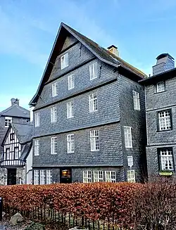 Das Haus Rolshausen zeigt sich in der engen Kirchstraße als giebelständiges dreigeschossiges Haus mit einem hohen zweigeschossigen Satteldach. Das Gebäude ruht auf einem massiven Gewölbekeller, der in den Hang gebaut wurde und zur Straße hin nur mit kleinen Luken ausgestattet ist. An der Kellerrückseite sind keine Fenster eingelassen, dafür ist die durchgehende Bruchsteinwand mit kräftigen Stützpfeilern hangwärts gesichert. Die Hausfassaden sind rundum mit grauen Schindeln bedeckt und weisen straßenseitig eine Auskragung zwischen den Stockwerken auf. Die Fensterachsen in den Fassaden sind mit vier zur Eingangsseite und drei zur Hausrückseite unregelmäßig verteilt und seitlich aufgrund der Nähe zu den Nachbarhäusern nicht mehr als Achsen definierbar. In ihnen sind hochrechteckige, heute weiße Sprossenfenster ohne erkennbare Gewände verbaut.