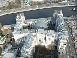 Das Gebäude wurde in den Jahren 1928–1931 auf einer Fläche von rund drei Hektar errichtet. Es steht auf der künstlichen Insel zwischen der Moskwa und dem Wasserumleitungskanal nahe dem historischen Stadtviertel Samoskworetschje, neben der Bolschoi-Kamenni-Brücke, die am anderen Ufer direkt neben den Kremlmauern endet.