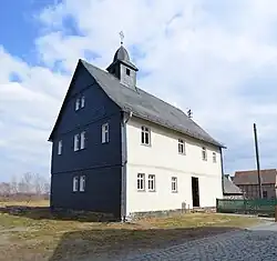 Das Haus bildet mit der gegenüberliegenden Schulscheune ein Beispiel für eine Schulhofreite um 1900.
