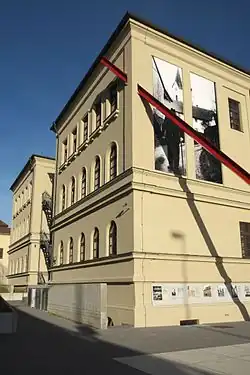 Seit 2014 gibt es auf der westlichen Außenfront das Denkmal für die Opfer des Nationalsozialismus. Es erinnert an die Verflechtungen von Pfaffenhofener Bürgern mit der nationalsozialistischen Herrschaft – als Täter und Mitmacher und als Opfer.