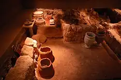 Es fanden sich Öfen, Basaltmörser, Kochtöpfe und viele Produkte der Jerusalemer Steinschneiderwerkstätten. Nach der These von Roland Deines, die sich allgemein durchgesetzt hat, sind solche Steingefäße speziell für die Erfordernisse des jüdischen Religionsgesetzes geschaffen worden, denn Stein kann, im Gegensatz zu Keramik, keine kultische Unreinheit annehmen. Steingefäße waren allerdings teuer, sodass in dem hier lebenden Haushalt einerseits ein hohes Interesse an kultischer Reinheit, andererseits Wohlstand anzunehmen ist; beides passt auf die Jerusalemer Priesteraristokratie.