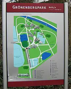 - ↑ Die Asphaltfläche reicht bis zur Jugendherberge, unserem Verwaltungs- und Mensagebäude. (14.10.2015), Webseite der Grönenbergschule, abgerufen am 10. September 2023.