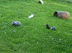 - ↑ a b Leitlinien der deutschen Gruppe der World Rabbit Science Association (WRSA) und des DLG-Ausschusses für Kaninchenzucht und -haltung zu Mindeststandards bei der Haltung von Hauskaninchen. 2009 (Seite nicht mehr abrufbar, festgestellt im April 2018. Suche in Webarchiven) Info: Der Link wurde automatisch als defekt markiert. Bitte prüfe den Link gemäß Anleitung und entferne dann diesen Hinweis. (PDF; 109 kB) DLG & WSRA