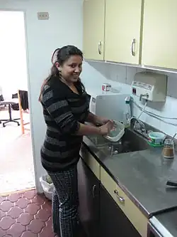 - Wäschereinigung und- instandhaltung: Vorbereiten, Waschen und Bügeln von Wäscheteilen und Kleidung, Instandhaltung von Textilien verbracht.