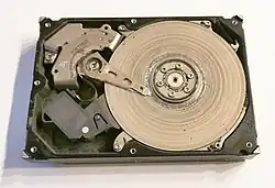 - Um ein Aufsetzen der Köpfe durch eine zu geringe Rotationsgeschwindigkeit zu verhindern, wird bei modernen Festplatten ein Airlock-System verwendet, das bei zu geringer Geschwindigkeit die Köpfe parkt.