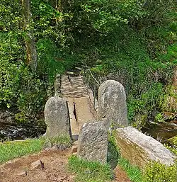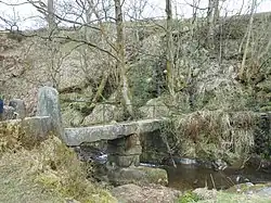 Die Hebble Hole Bridge liegt nahe Hebden Bridge, West Yorkshire. Die Steinplattenbrücke führt den Pennine Way über das Colden Water.[1]