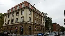 Das mehrgeschossige Gebäude ist repräsentativ gestaltet mit Gestaltungselementen der italienischen Renaissance insbesondere im Erdgeschoss. Im Jahre 1945 war hier mit dem Volksverlag Weimar einer der ersten neuen Buchverlage ansässig.[3] Auch Robotron war hier mit dem Zweigbetrieb VEB Robotron-Rationalisierung Weimar.[4] Heute ist es eine Filiale der VR Bank.