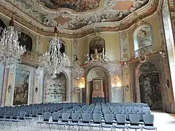 Das Schloss hob sich zumindest unter den Residenzen der zahlreichen thüringischen Kleinstaaten dieser Zeit durch seine große Prachtentfaltung hervor. Diese besteht vor allem aus Krohnes herausragender Dekoration des 12 Meter hohen Festsaals. Den ursprünglich strikt rechteckigen Saal Knöffels stattete Krohne mit wellenförmig geschwungenen Wänden, Ofennischen auf den Schmalseiten, abgerundeten Ecken mit Büfettnischen und Logen im oberen Teil aus. Dazu kamen reiche Stuckverzierungen an den Wänden und ein Deckenfresko. Südlich des Festsaales wurden ab 1742 die „roten Räume“ gestaltet, 1750 folgten Zimmer auf der nördlichen Seite, die sich um den „Grünen Saal“ gruppieren und in den 1770er Jahren fertiggestellt wurden. Auch diese Räume verfügen über reichen Schmuck aus Stuck, Deckengemälden, Wandbildern und Schnitzereien. Sämtliche Räume des Festsaal-Ensembles wurden durch eine Galerie miteinander und mit den beiden Treppenhäusern verbunden. Der Südflügel besteht vor allem aus Wohnräumen, die aber mehrfach nach persönlichen Vorlieben und Moden umdekoriert wurden und deshalb heute ein uneinheitliches Erscheinungsbild bieten.