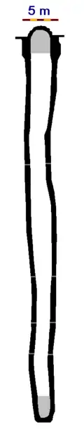 Bis zur frühen Neuzeit war das Loch jedenfalls schon mehrfach verändert worden. Unter anderem war es an der Schachtsohle mantelartig rund ausgemauert worden, war es teilweise erst mit Geröll und später mit Gegenständen aus den Klöstern verfüllt worden, war der Schachtkopf mit quadratischem Mauerwerk befestigt und war das Loch von einem Mauergewölbe bedeckt, das nur noch eine kleine Öffnung aufwies, die später bis zur Erforschung im 20. Jahrhundert auch noch stark vergittert war.