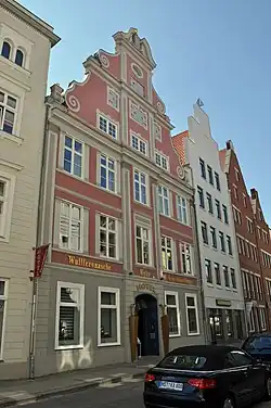- ↑ Friederike Thomas, Dietmar Volksdorf: Die Altstadtinsel Stralsund – Illustrierte Denkmalliste. Die Baudenkmale der Altstadt in Text und Bild. Hrsg. vom Bauamt der Hansestadt Stralsund. Selbstverlag, Stralsund 1999, DNB 987697757, S. 32–35.