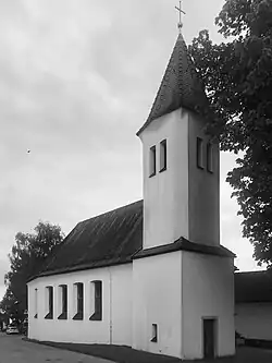Der Turm stammt aus dem 18. Jahrhundert. Das römisch-katholische Kirchengebäude wurde in den Jahren von 1954 bis 1955 unter Einbeziehung des bestehenden Westturms nach den Plänen des Ingolstädter Architekturbüros Elfinger erweitert und ausgestattet. Besonderheit des neuen Langhauses ist die Deckengestaltung des Innenraums. Die vier Glocken mit der Tonfolge gis1, h1, cis2 und dis2 wurden 1955 von der Gießerei Czudnochowsky in Erding gegossen.[2]