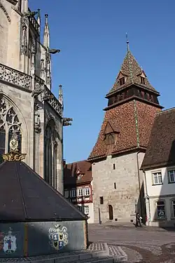 3. a b Peter Spranger: Heilig-Kreuz-Münster Schwäbisch Gmünd. Hrsg.: Münsterbauverein e. V. Einhorn-Verlag, Schwäbisch Gmünd 2000, ISBN 3-927654-77-9, S. 9.