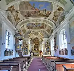 Die Kanzel ist mit reichen kräftigen Schnitzornamenten versehen und wurde 1746 von Anna Maria Gottfried, Kistlerin aus München-Haidhausen, geschaffen. An der südlichen Langhausseite ist ein 1745 gestifteter Kruzifixus mit Mater dolorosa aus Holz aufgestellt.