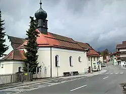Die im Kern 1423/26 gebaute Saalkirche wurde nach einem Brand 1742 neu errichtet, aber erst 1759 fertiggestellt. Sie besteht aus dem Langhaus zu zwei Jochen, dem dreiseitig geschlossenen Chor im Süden und der Sakristei im Chorscheitel. Auf dem Dach des Chors erhebt sich ein quadratischer, mit einer Zwiebelhaube bedeckter Dachreiter, in dessen offenem Dachstuhl eine Glocke hängt.