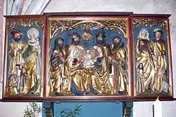 Um die heilige Anna herum werden im Motiv der heiligen Sippe die Ehemänner, Töchter und Schwiegersöhne und die Enkel dargestellt: Joachim, Cleopas, Salomas, Maria, Josef, Maria Cleopas, Alphäus, Maria Salome, Zebedäus, Simon Zelotes, Judas Thaddäus, Jakobus der Jüngere, Josef und die Zebedäussöhne Jakobus der Ältere und Johannes, insgesamt 17 Personen.