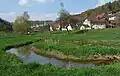 Traindorf liegt knapp einen Kilometer südlich von Heiligenstadt im Tal der Leinleiter. |