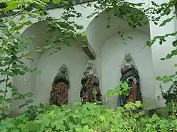 An der Auffahrt zur Klosteranlage steht ein doppelnischiger Bildstock mit einem eingemauerten römischen Inschriftenstein aus dem 2. Jahrhundert. In den Nischen stehen Ende des 17. Jahrhunderts gefertigte hölzerne Skulpturen der weinenden Frauen am Grabe.[2]