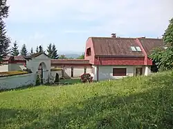 Das Klostergebäude befindet sich nördlich der Kirche und ist mit dieser über einen Gang verbunden. Es wurde 1975/76 nach Plänen von Fridrun Hussa erbaut.[2] Im Sprechzimmer des Klosters kann man einige Funde aus der Urnenfelderzeit wie Töpfe, Schalen, Webstuhlgewichte und Spinnwirtel besichtigen, die während des Klosterbaus ausgegraben wurden.[1]