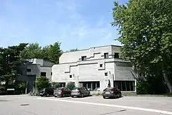 Die Kirche Heiligkreuz befindet sich neben dem Spital Tiefenau inmitten des gleichnamigen Quartiers am Kastellweg 7. Schon beim Architekturwettbewerb hatte die Jury am Projekt von Walter M. Förderer überzeugt, dass dieser ein grundsätzlich zurückhaltendes Bauensemble von Kirche, Pfarrhaus und Pfarreizentrum plante, das den Besucher durch einen Vorhof in «eine klar erfassbare, in sich geschlossene kirchliche Anlage»[17] führt und so den Besucher auf den Sakralraum der Kirche Heiligkreuz vorbereitet. Von der Strasse her ist die Kirche kaum als solche zu erkennen, da an der Strassenkreuzung das Pfarrhaus steht und die Sicht auf die dahinterliegende Kirche verdeckt. Auch die niedrige Bauhöhe der Kirche und das Fehlen eines Kirchturms bewirken, dass Heiligkreuz nicht monumental erscheint, sondern auf die Funktionalität für das Pfarreileben ausgerichtet ist,[18] wie dies auch bei anderen in jenen Jahren erstellten Kirchenbauten in der Deutschschweiz der Fall ist, so bei St. Ulrich Winterthur-Rosenberg (1971) und Heilig Geist Zürich-Höngg (1973).