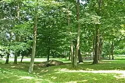 Im Park sind vier Bäume als Baumdenkmale ausgewiesen, die um 1760 gepflanzt wurden und heute damit über 250 Jahre alt sind. Es handelt sich um jeweils einen Ginkgobaum, eine Rotbuche, eine Hängebuche und eine Schwarzkiefer.[1] Die Bäume haben einen Stammdurchmesser von 2,40 bis 8 Metern sowie eine Höhe von 18 bis 40 Metern.[2]