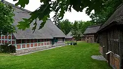 - der 300 Meter entfernten Hofanlage Am Meyerhof 1 auf dem Meyerhofgelände mit dem Wohn- und Wirtschaftsgebäude von 1875 als Kultur- und Begegnungsstätte und Trauzimmer, Kunstgewerbehaus, Weberhaus mit Blaudruckereiausstellung, Blaudruckerspeicher, Schmiede, dem Doppel-Häuslingshaus, einem Schafstall und dem Torhaus.