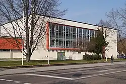 Für die Schwimmhalle schuf Reinhold Ewald aus kalkgebundenem Putzmörtel mehrere Großreliefs mit Sport- und Badeszenen. Sie befinden sich an den schmalseitigen Wände der Halle.[1]