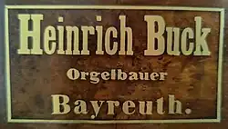 Heinrich Buck erlernte zunächst das Schreinerhandwerk und war danach im Orgelbau tätig. Er war Mitarbeiter bei den Orgelbaufirmen Maerz, Breil und dann bei Weineck in Bayreuth. Dort machte er sich nach seiner Heirat 1863 selbstständig.