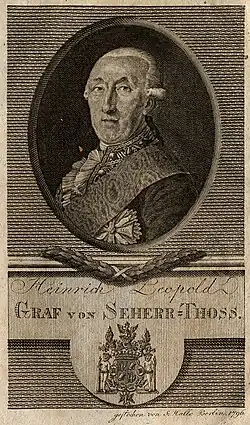 - Heinrich Leopold (* 1. Januar 1785; † 18. August 1837), erbte nach dem Tode des Vaters die Herrschaften Bitschin und Kieferstädtel und er war der Stifter des älteren Astes des älteren gräflichen Hauses. Der Enkel Arthur Seherr-Thoß (1820–1898) beteiligte sich in Ungarn an der Bauernbefreiung und war später Abgeordneter des ungarischen Reichstages;