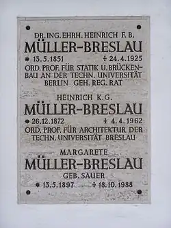 - ↑ Müller-Breslau, Heinrich Franz Bernhard. In: Catalogus Professorum TU Berlin. Abgerufen am 27. Februar 2023.