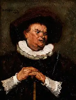 - Halbbildnis eines Mannes im Kostüm des 17. Jahrhunderts (München, Hampel Kunstauktionen, verkauft im September 2013), Öl auf Karton, 23 × 18,5 cm[6]