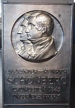 Gemeinsam mit seinem Bruder Alexander Schönberg (1806–1886), der hauptsächlich als Geldgeber beteiligt war, gründete er 1842/43 in Gröba bei Riesa ein eigenes Eisenwerk auf Koksbasis. Die Konzession für den Aufbau des Werkes erhielten die Brüder am 27. März 1843. Noch im gleichen Jahr begann die Produktion mit zwei Puddelöfen und einem Dampfhammer. 1846 trat Heinrich Bodemer anstelle von Alexander Schönberg in das Unternehmen ein. Sie firmierten als Eisenhüttenwerk Gröba bei Riesa. Es wurde zu einem modernen Stahl- und Walzwerk eingerichtet.[1] Das Werk profitierte sowohl vom Riesaer Elbhafen als auch von dem bereits bestehenden Eisenbahnanschluss.[2]