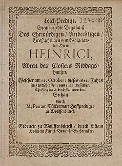Scheeles Leichenpredigt verfasste der damalige Hofprediger und spätere Abt Peter Tuckermann.[1]
