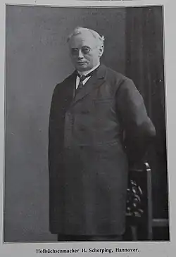 Abweichend von der natürlichen Person des Hofbüchsenmachers soll zum 28. Oktober 1911 für die Firma Heinrich Scherping eK beim Amtsgericht Hannover ein Eintrag im Handelsregister unter der Nummer HRA 14587 vorgenommen worden sein. Demnach wurde dieses Unternehmen am 20. Mai 1963 aus dem Handelsregister gelöscht.[19]