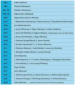 Übersicht humanitäre Einsätze mit Interplast-Germany e. V. / Sektion München (1984–2020)