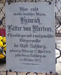 Gruft XIX (Petersfriedhof Salzburg): Gedenktafel für Heinrich von Mertens