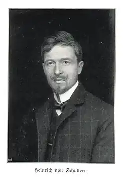 Nach der Matura 1884 studierte Heinrich Medizin an den Universitäten Innsbruck[1], Graz[2] und München[3]. Während seines Studiums wurde er 1885 Mitglied der Burschenschaft Frankonia Graz, aus der er 1910 austrat; später gehörte er dem Corps Ottonia Wien an.[4] Seine Promotion zum Doktor für die gesamte Heilkunde erfolgte 1890 in Innsbruck. Die ersten praktischen Erfahrungen sammelte er als Assistenzarzt an der Innsbrucker Frauenklinik und als Sekundararzt in der internen, dann in der chirurgischen Abteilung des Salzburger Landeskrankenhauses. Nach seiner Eheschließung mit Anna von Thurn (1868–1937) entschloss sich Schullern, als Gemeindearzt in Maxglan (Salzburg) tätig zu werden. Nach der Geburt seiner Tochter Edith (1892–1982) trat er als Reservearzt dem österreichischen Heer bei und wurde 1895 Oberarzt der Landwehr in Salzburg.