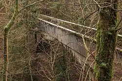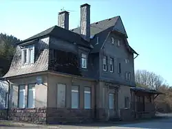 Die Eisenbahnstrecke von Altenhundem nach Birkelbach, die 1914 eingeweiht worden ist, wurde im Zweiten Weltkrieg zerstört und für Heinsberg nicht wieder in Betrieb genommen.[9] Erhalten geblieben ist hiervon das Bahnhofsgebäude in Heinsberg, der Aquädukt im Krenkeltal und die beiden vermauerten Portale des Heinsberger Tunnels. Aquädukt und Tunnelportale sind als Baudenkmäler in die Denkmalliste der Gemeinde Kirchhundem eingetragen.[8]