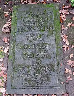 - Heinz Beckmann 1877–1939. In: Das lokale Fenster zur Wanderausstellung der Nordkirche »Neue Anfänge nach 1945?« Hauptkirche St. Nikolai am Klosterstern. Die Geschichte der Hauptkirche St. Nikolai von 1842 bis heute (pdf, abgerufen am 4. November 2021).