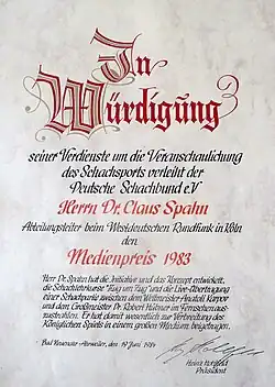 - ↑ Ehrungen im Bereich des Deutschen Schachbundes