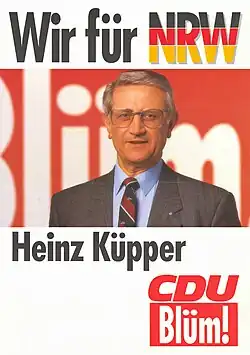 Heinz Küpper war vom 28. Mai 1975 bis zum 28. Mai 1980 direkt gewähltes Mitglied des 8. Landtages von Nordrhein-Westfalen für den Wahlkreis 010 Euskirchen II.