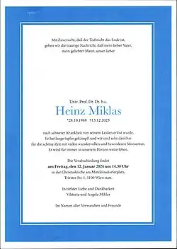 - ↑ Stefan Michael Newerkla: Heinz Miklas (1948–2023). Nachruf auf O. Univ.-Prof. i. R. Dr. Heinz Miklas. 14. Dezember 2023, abgerufen am 17. Dezember 2023.