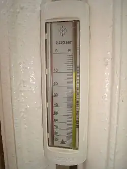 - Ablesen per Funk: Die Ablesewerte werden per Funk (oft gemäß Open-Metering-System-Standard im Frequenzband um 868 MHz für Short Range Devices)[3][4][5] zu einem oder mehreren Empfängern außerhalb der Wohnung übertragen. Beim Walk-by-Verfahren kommen mobile Empfänger zum Einsatz, die der Ableser mit sich führt und temporär in Funkreichweite der abzulesenden Heizkostenverteiler (meist ins Treppenhaus). Die Alternative sind stationäre Datensammler, die als Gateway fungieren. In beiden Fällen muss der Ableser die Wohnung nicht mehr betreten.[6] Die Stichtagswerte und meist auch alle Monatsendwerte werden einige Male gesendet und in den Datensammlern gespeichert. Diese Daten können vor Ort ausgelesen werden oder per Internet (beispielsweise via GSM oder UMTS) vom Messdienst abgerufen werden.