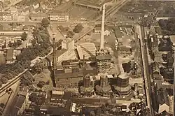 Betriebsaufnahme 1901 (Städtisches Electricitaetswerk) 1958 (Heizkraftwerk mit geschlossener Gasturbine und Kohlestaubfeuerung)