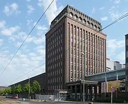 8. Südlich vor dem Maschinenhausvorbau lag das elfstöckige Verwaltungshochhaus, in dem auch die Wasch- und Umkleideräume und die Einrichtungen der Werkssanität untergebracht waren.