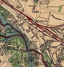 Zu den größten Abnehmern des Kraftwerks Klingenberg gehörte die Deutsche Reichsbahn, die im Jahr 1928 mit der Bewag einen Stromliefervertrag zur Versorgung der Berliner Stadt-, Ring- und Vorortbahnen, der späteren Berliner S-Bahn, abschloss. Dazu wurde am Markgrafendamm in der Nähe des S-Bahnhofs Ostkreuz ein Schaltwerk errichtet und mit dem Kraftwerk verbunden.[9] Die Kohleanlieferung erfolgte sowohl auf dem Wasserweg als auch mit der Bahn. Dazu wurden Ganzzüge aus vierachsigen Großraumselbstentladewagen eingesetzt, die direkt über dem Tiefbunker entladen wurden.